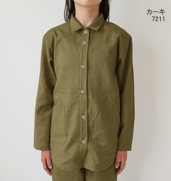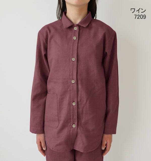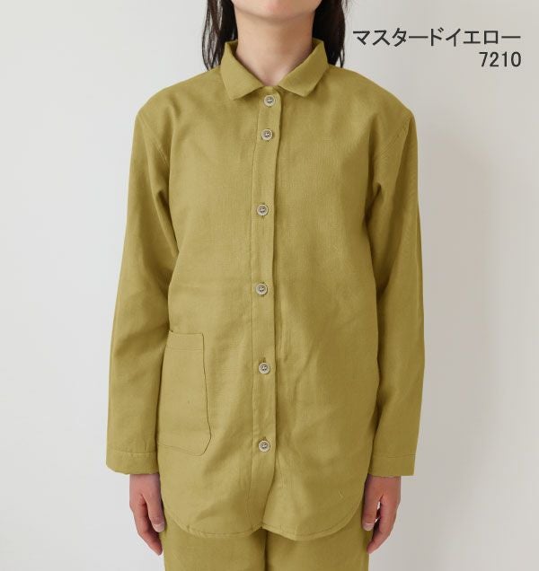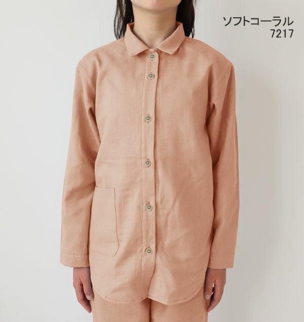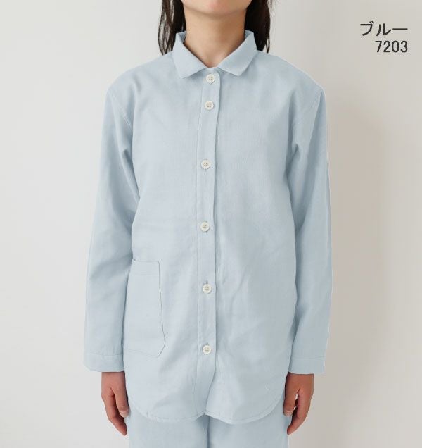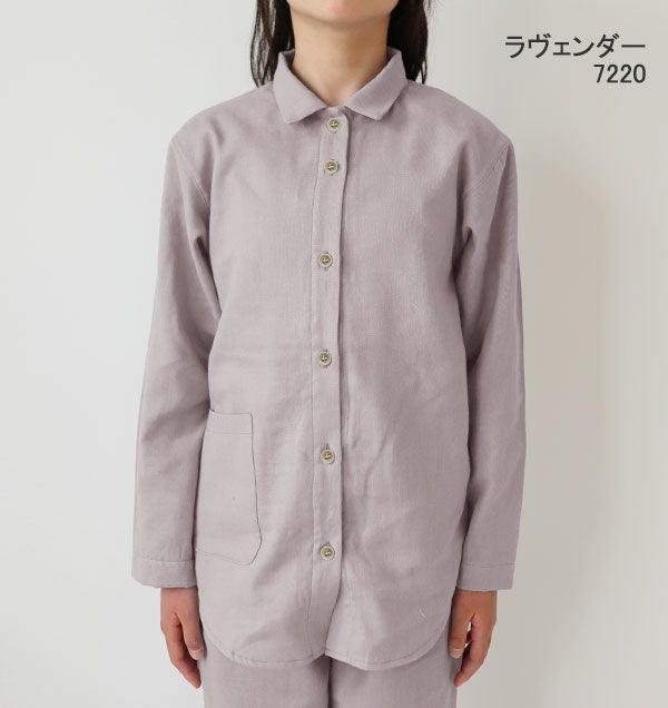 昔ながらの和晒製法が生み出す特別な風合い 和晒京ふたえガーゼ女の子パジャマ上着単品・長袖/前開き/襟あり 【オーダーメイド】
