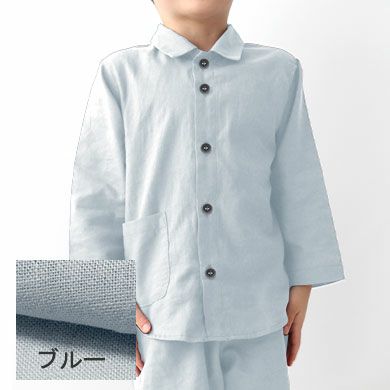 柔らか×軽い×涼しい!和晒製法の1重ガーゼ 夏のかるふわガーゼ男の子パジャマ上着単品・長袖/前開き/襟あり【オーダーメイド】