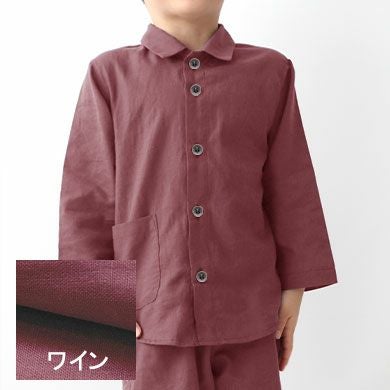 昔ながらの和晒製法が生み出す特別な風合い 和晒京ふたえガーゼ男の子パジャマ上着単品・長袖/前開き/襟あり 【オーダーメイド】