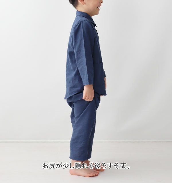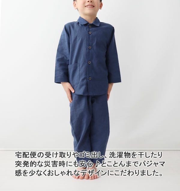 柔らか×軽い×涼しい!和晒製法の1重ガーゼ 夏のかるふわガーゼ男の子パジャマ上下セット・長袖/前開き/襟あり【オーダーメイド】